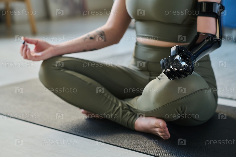 Женщина, сидящая в положении лотоса и занимающаяся йогой