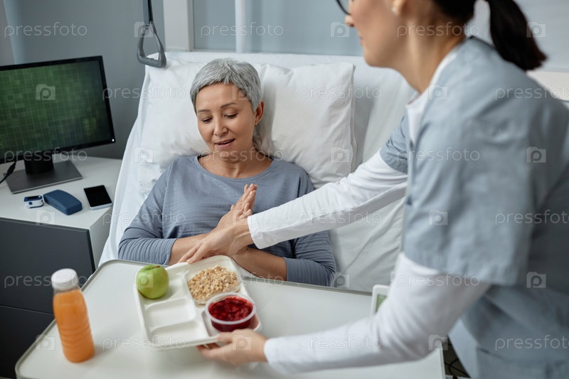 Медсестра приносит обед больному пациенту