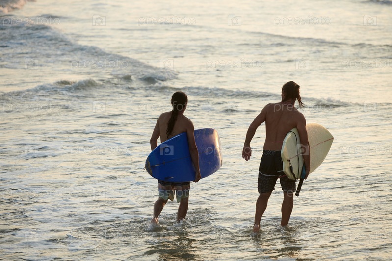 Сёрферы направляются в воду