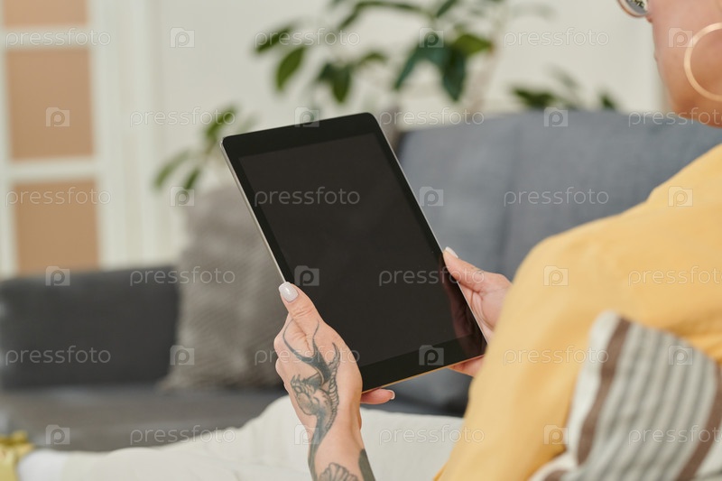 Девушка, использующая планшетный компьютер дома