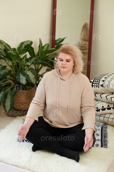 Плюс размер женщина медитирует