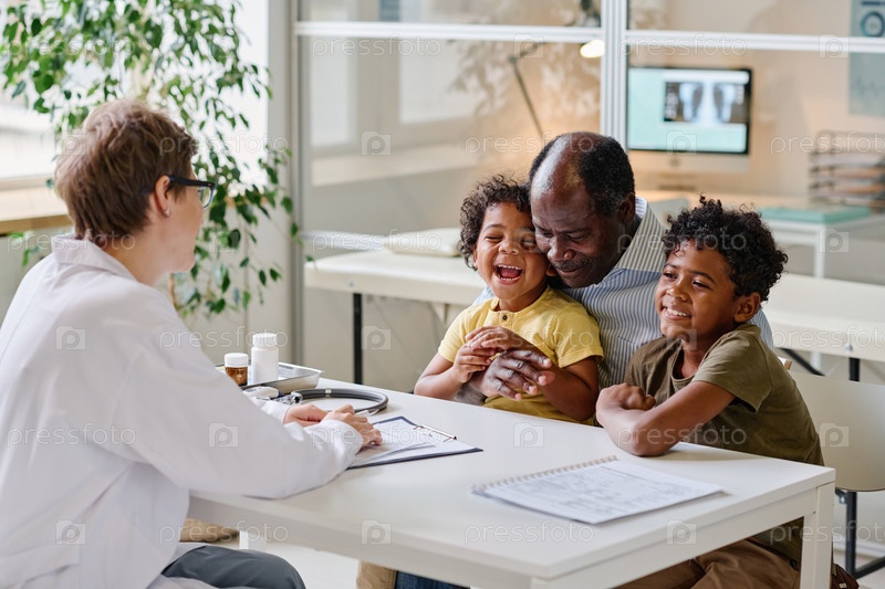 Дети с отцом, посещающим педиатра
