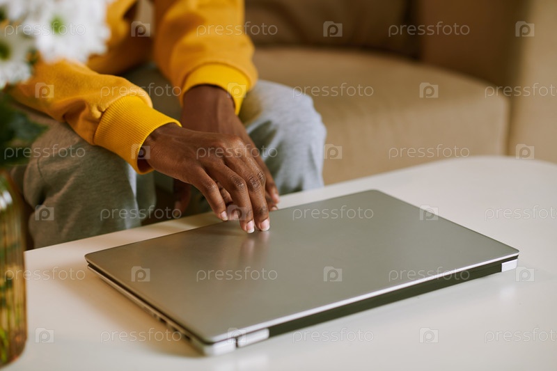 Девушка, открывающая ноутбук