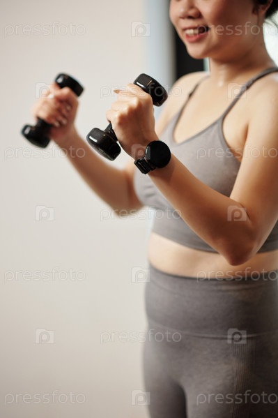 Женщина, занимающаяся упражнениями с маленькими гантельками
