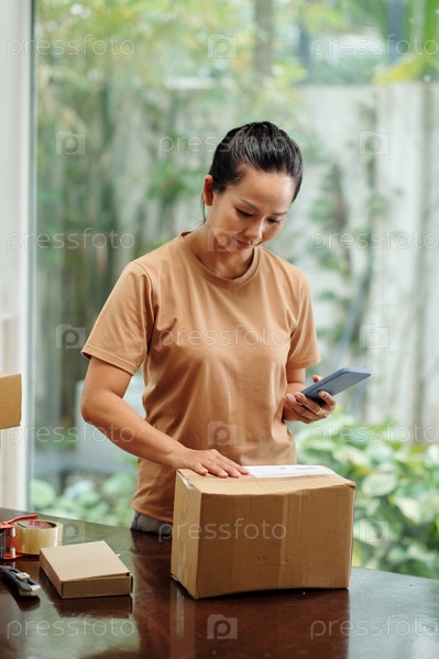 Женщина, регистрирующая посылку