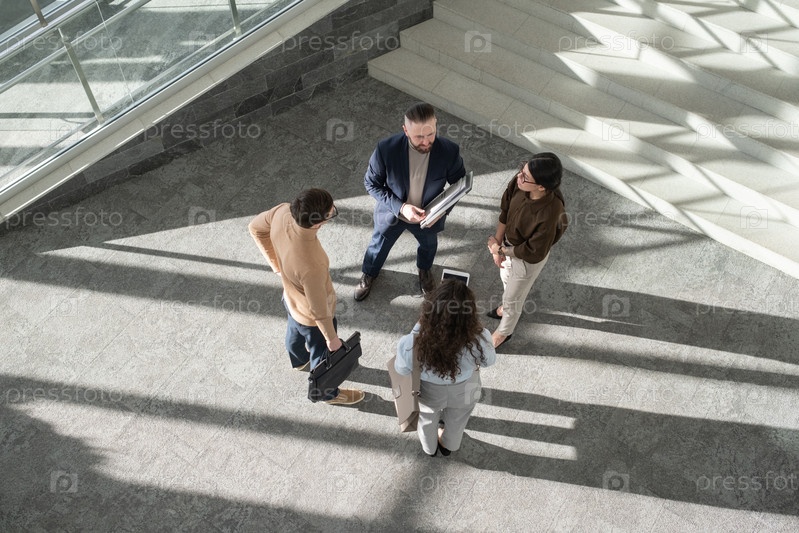 Группа современных делегатов в формальной одежде, имеющих дискуссию