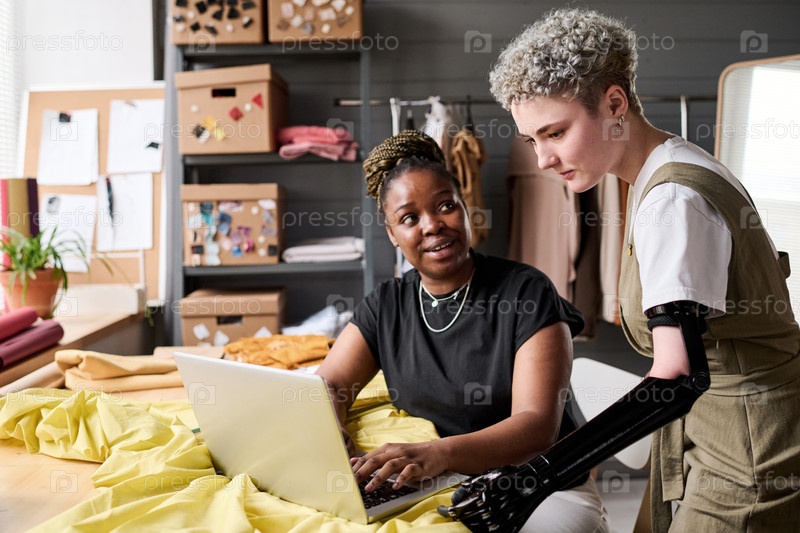 Два молодых интеркультурных дизайнера модной одежды обсуждают информацию для нового проекта