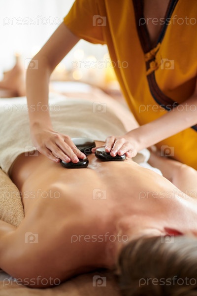 Женщина, получающая каменный массаж