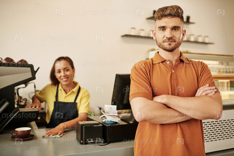Positive Coffeeshop Owner Положительный владелец кофейни