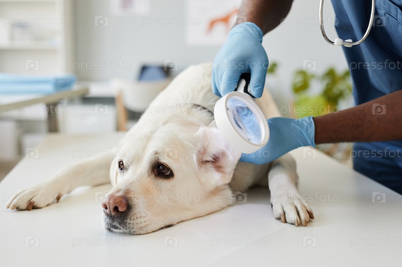 Красивое больное чистокровное домашнее животное, проходящее обследование ушей