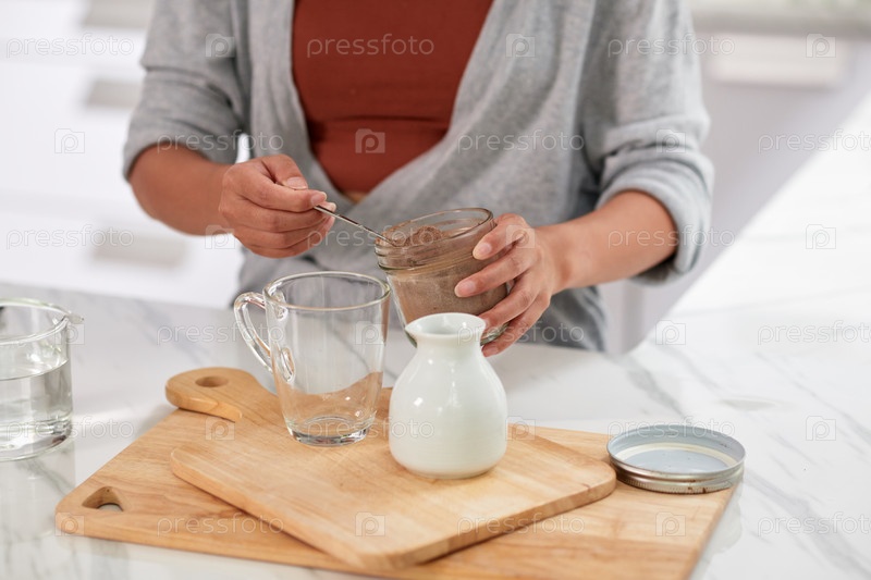 Женщина готовит какао на завтрак