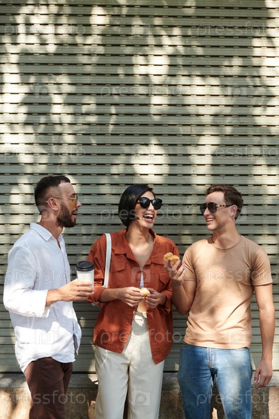 Мужчина делится уличной едой с голодными друзьями