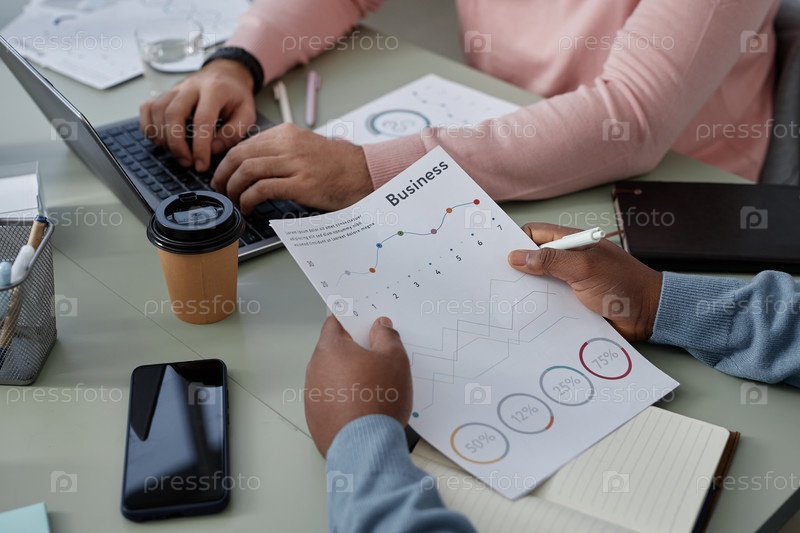 Финансовый документ с графическими данными в руках молодого афроамериканца