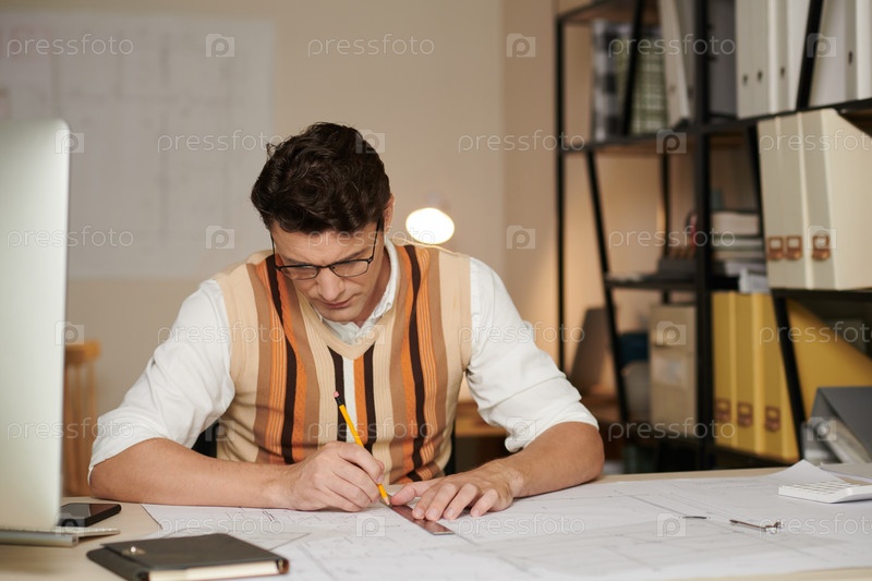 Архитектор рисует строительный план