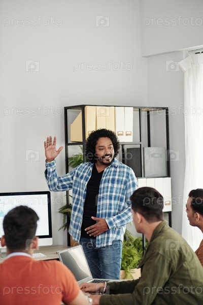 Основатель стартапа говорит перед командой