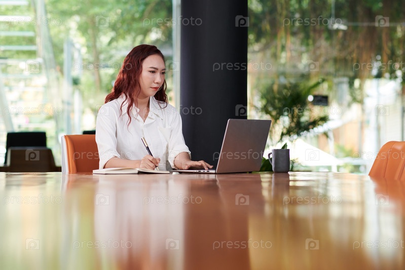 Деловая женщина смотрит онлайн-презентацию