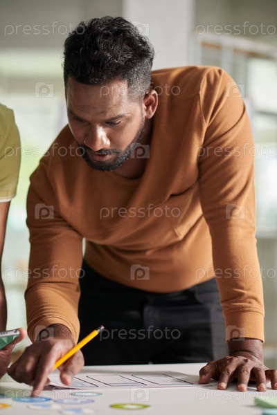 UX-дизайнер обсуждает интерфейс с коллегами