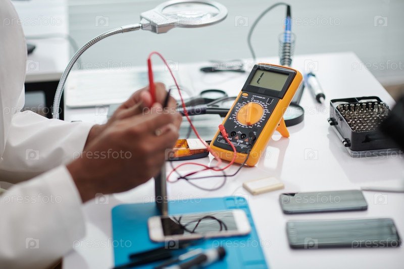Инженер, использующий мультиметр