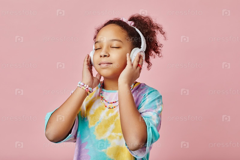 Красивая девушка, слушающая лечебную или расслабляющую музыку в наушниках