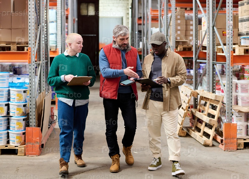 Форман объясняет работу рабочим на складе