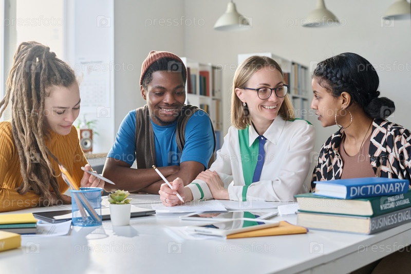 Студенты разговаривают с учителем на уроке