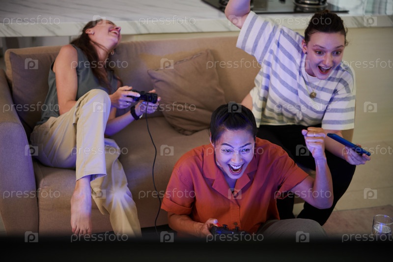 Друзья играют в видеоигры дома