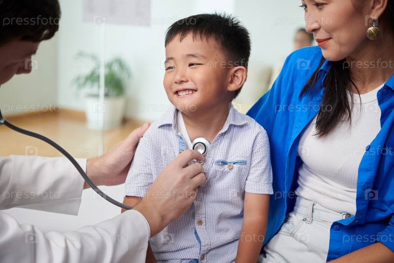 Улыбающийся мальчик смотрит на доктора