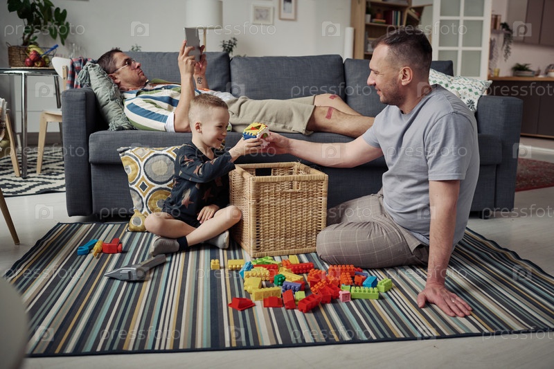 Гей-отец играет с усыновленным ребенком дома