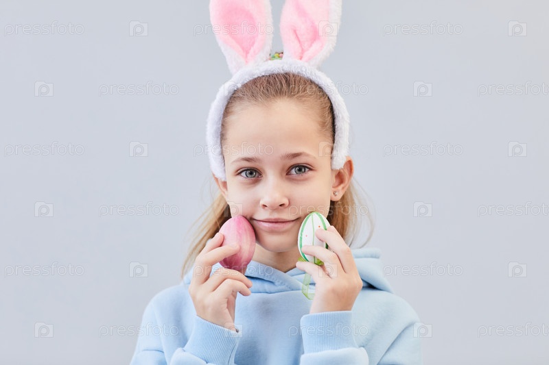Минимальная девочка, держащая пасхальные яйца