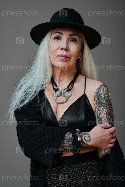 Зрелая женщина с татуировками портрет зрелости