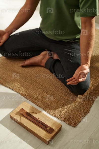 Молодой человек медитирует на полу