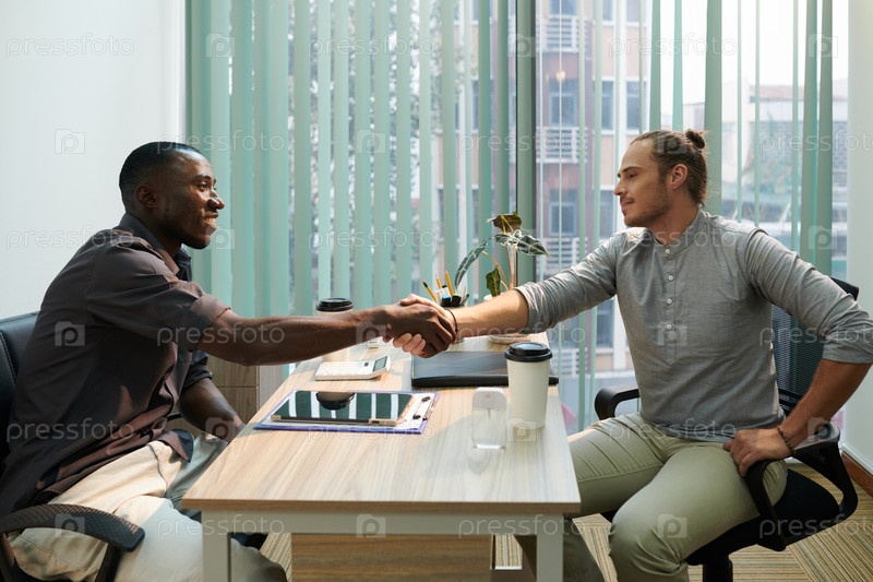 Рекрутер пожимает руку кандидату