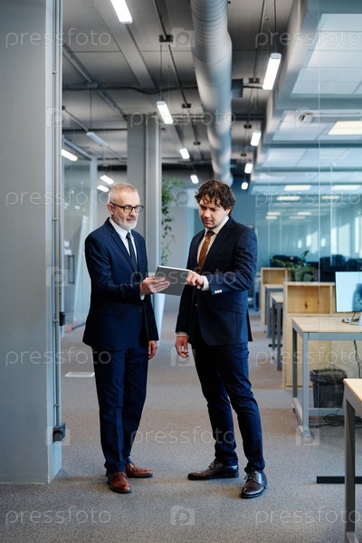 Коллеги, использующие планшетный компьютер в офисе