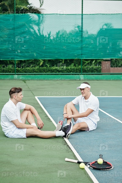 Игроки отдыхают после игры в теннис