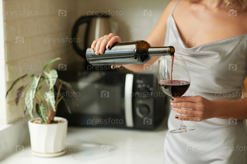 Женщина, наливающая бокал вина