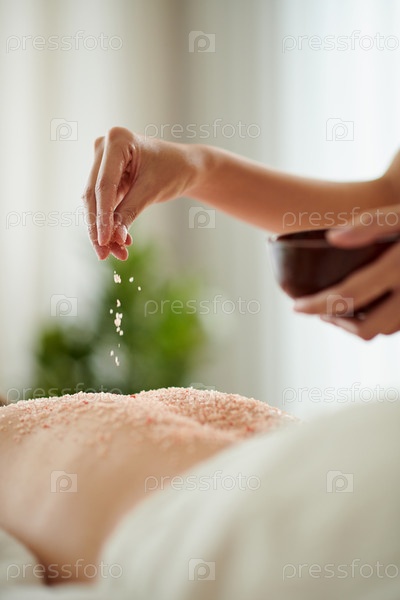 Женщина, зажимающая соляный скраб на спине