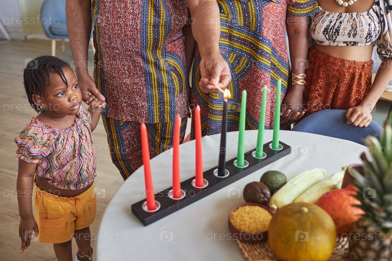 Семья зажигает свечи на праздник Кванзаа