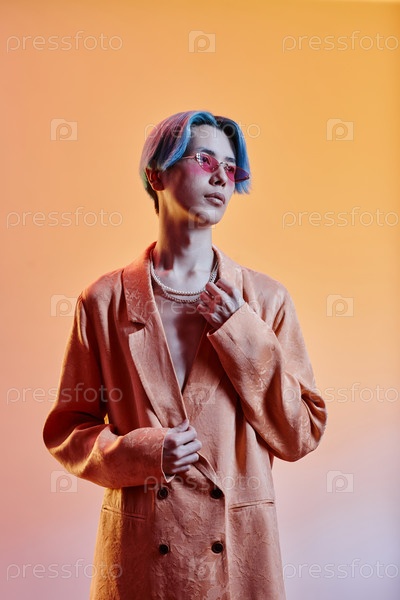 Стильный парень с синей прической