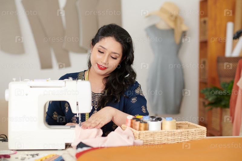 Швея, работающая на швейной машине