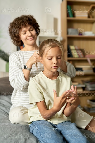 Мать делает прическу своей дочери