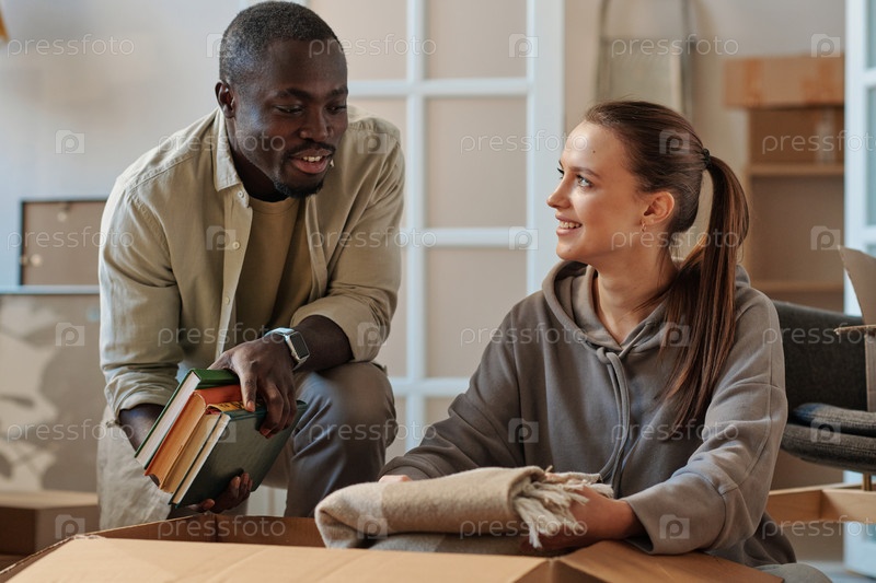 Мультиэтническая пара переезжает в новую квартиру