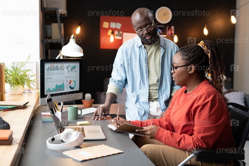 Женщина разговаривает с коллегой в офисе