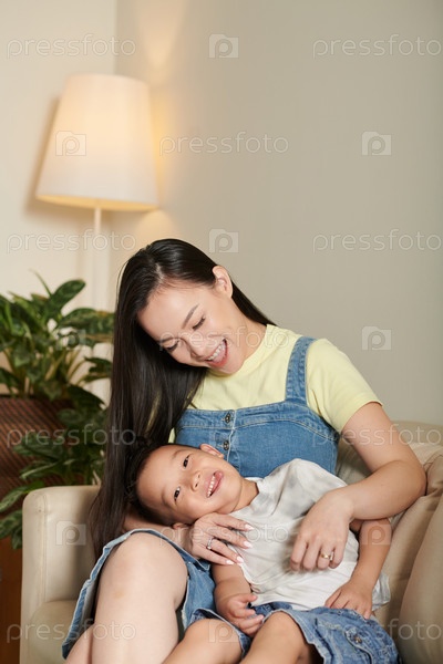 Мать, щекочущая маленького сына