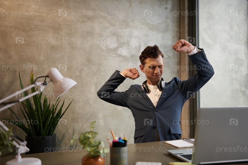 Бизнесмен, растягивающий спину