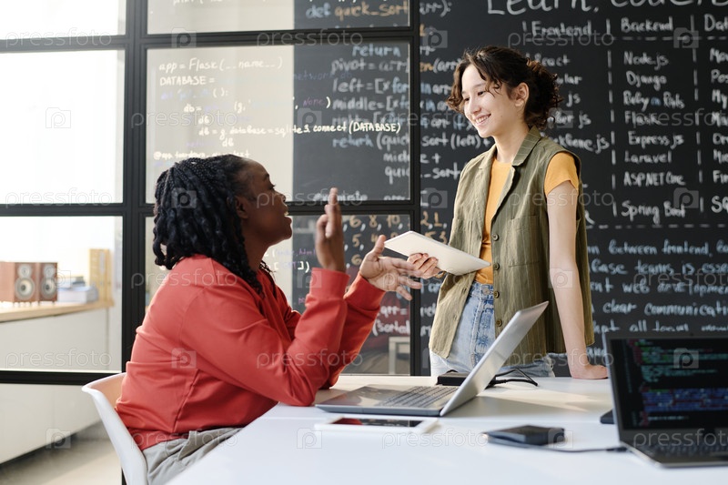 Учитель разговаривает со студентом в классе
