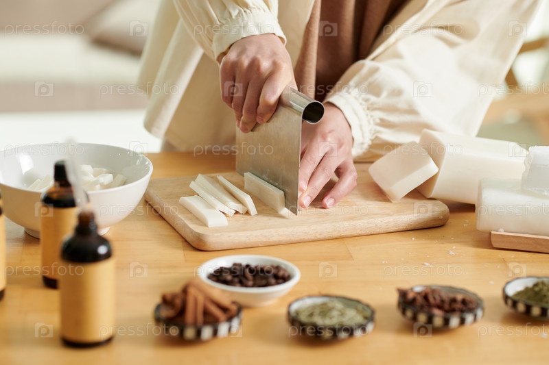 Женщина, режущая мыльную базу