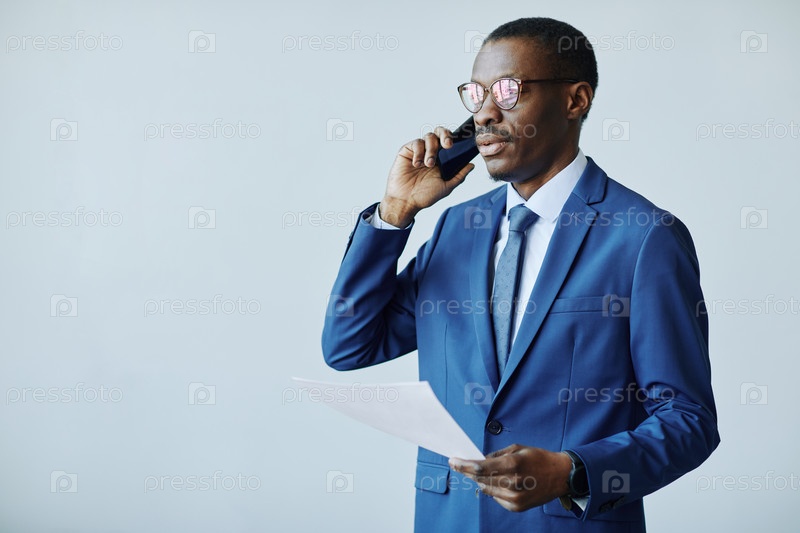 Бизнес-менеджер говорит по телефону Минимальный