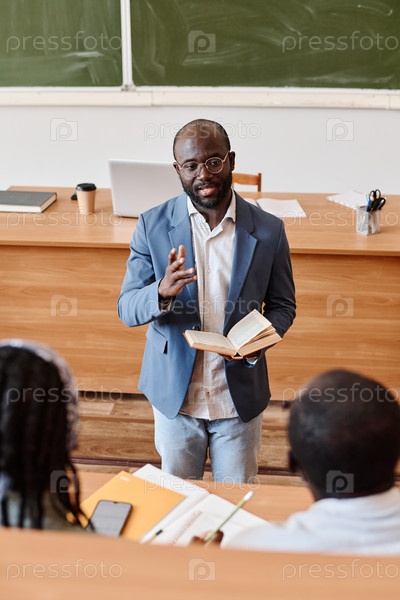 Учитель читает лекцию в аудитории университета