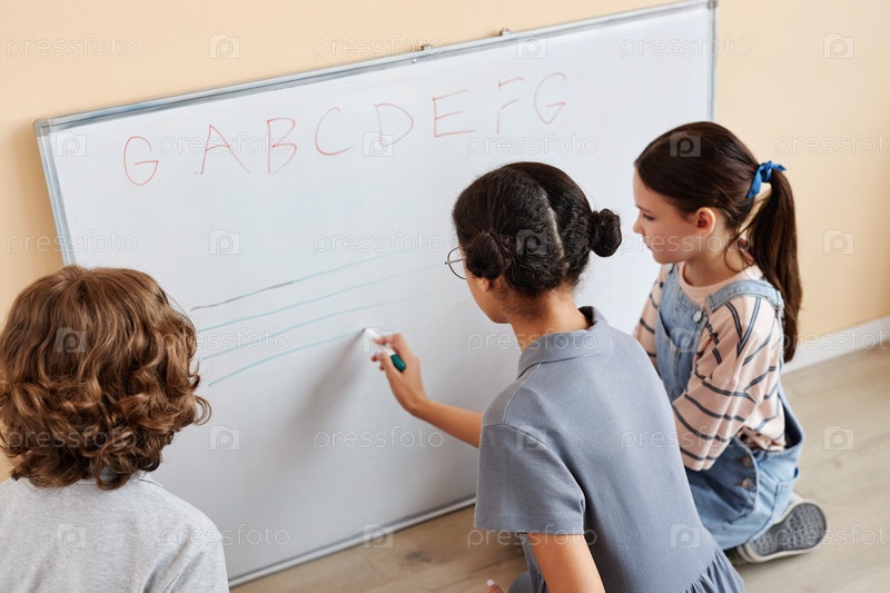 Группа детей, изучающих записки