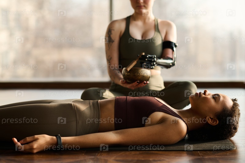Женщина, расслабляющаяся во время практики йоги